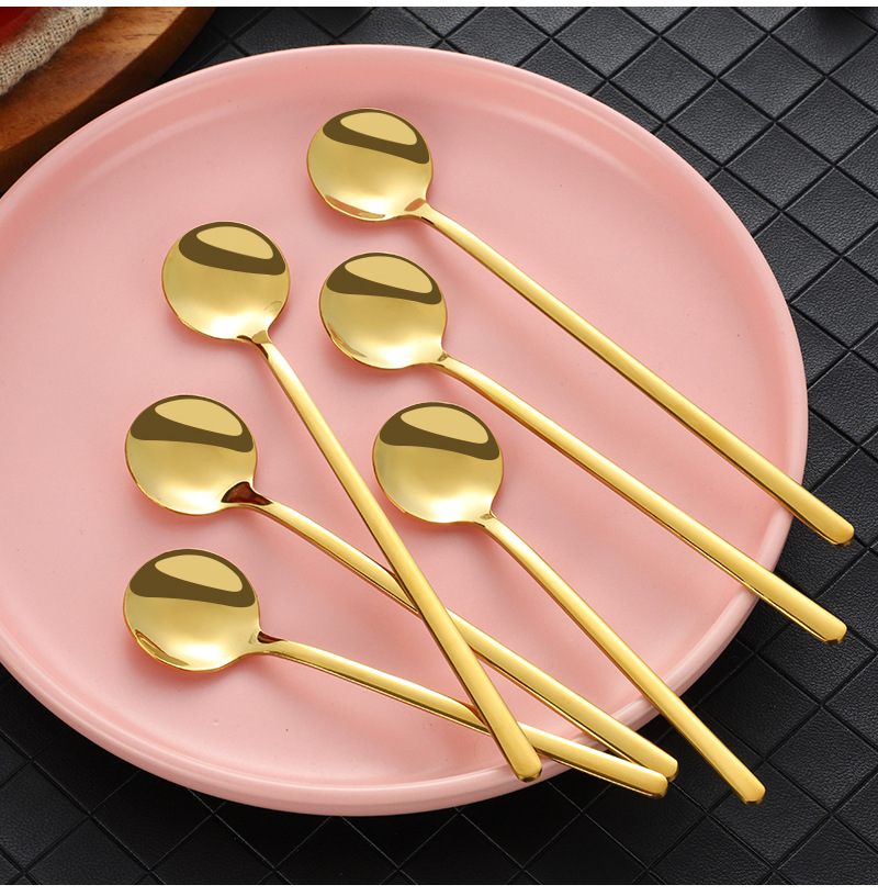 Cute Little Spoon Stainless Steel High Appearance Level Gold Coffee Spoon Mixing Spoon Dessert Spoon Ice Cream Spoon Long Handle Ice Spoon
