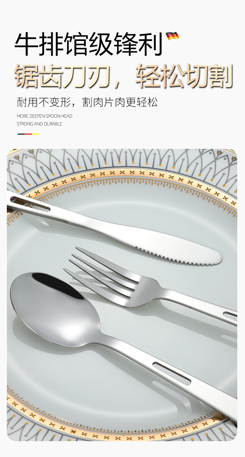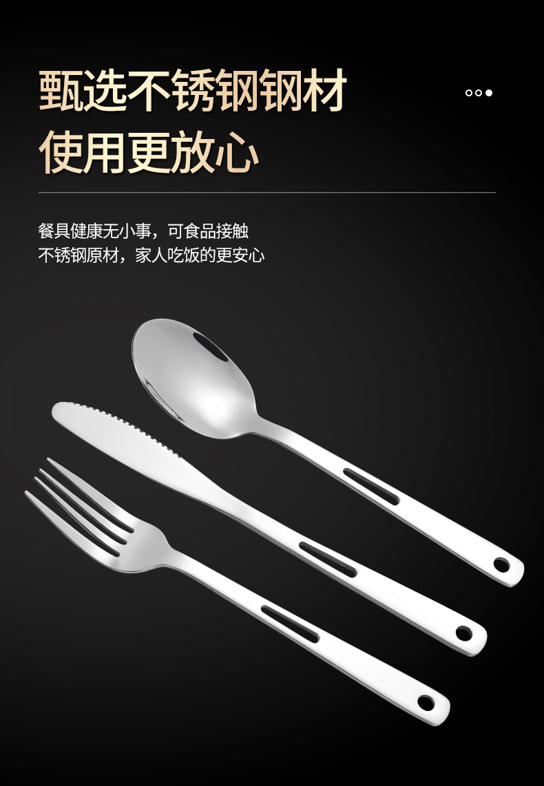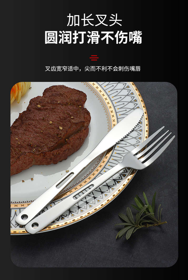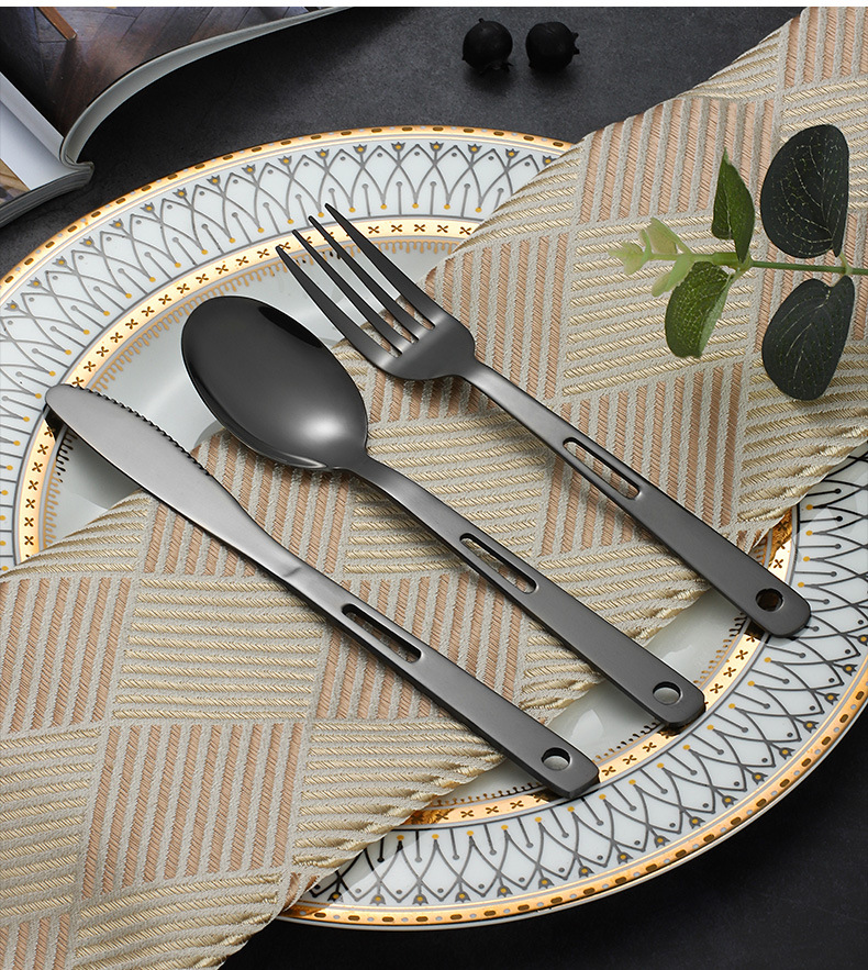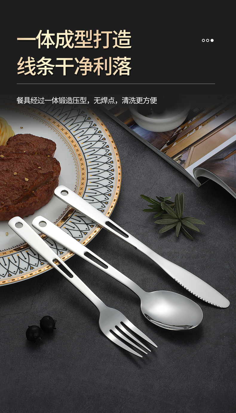 Stainless Steel Cross-Border Outdoor Knife, Fork And Spoon Western Tableware Set Portable Travel Camping Family Three-Piece Creative Hollow-Out