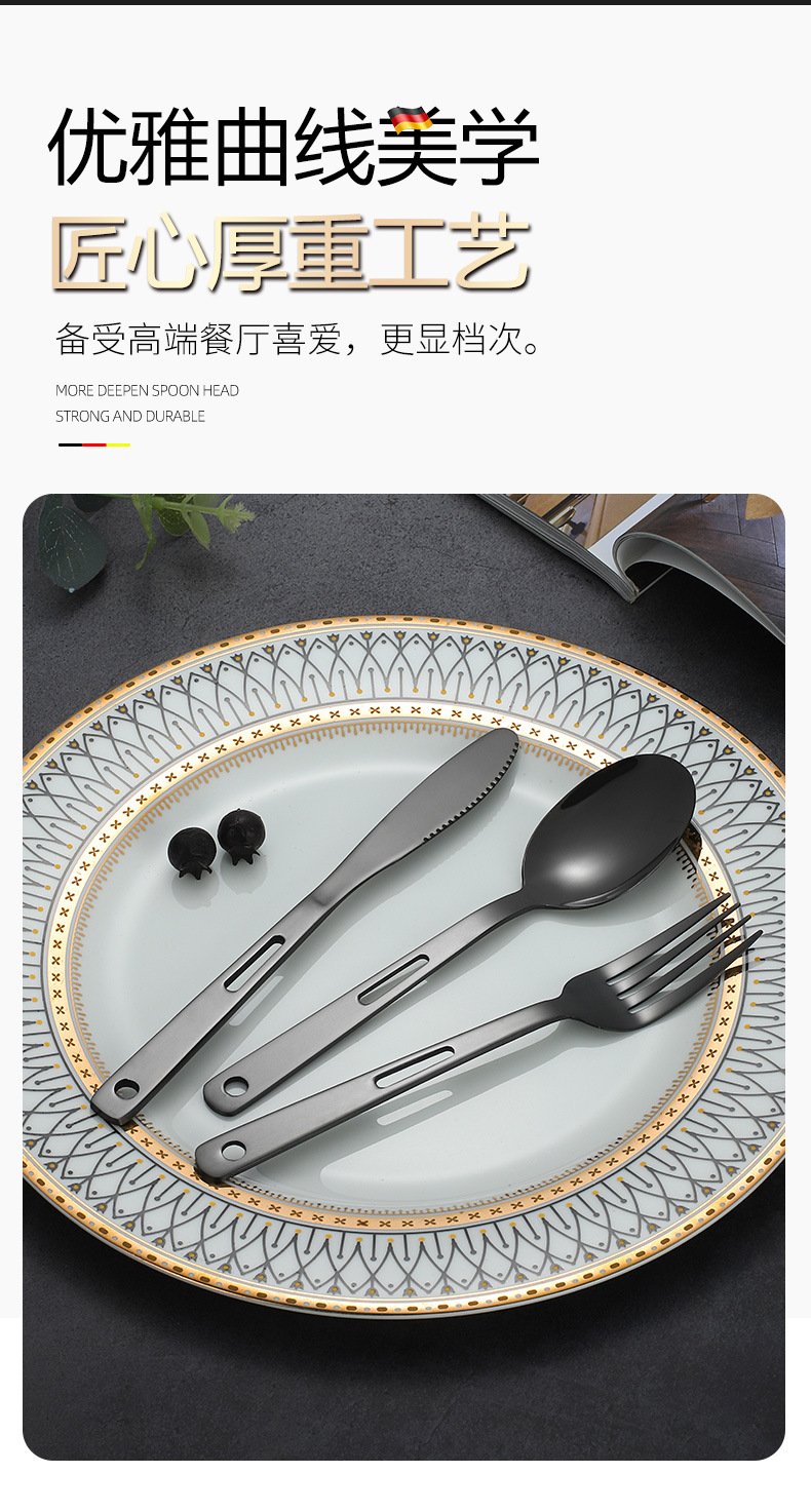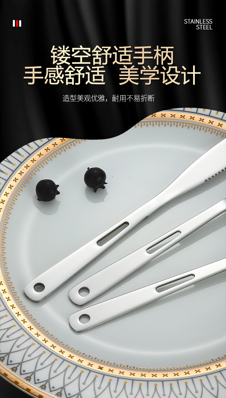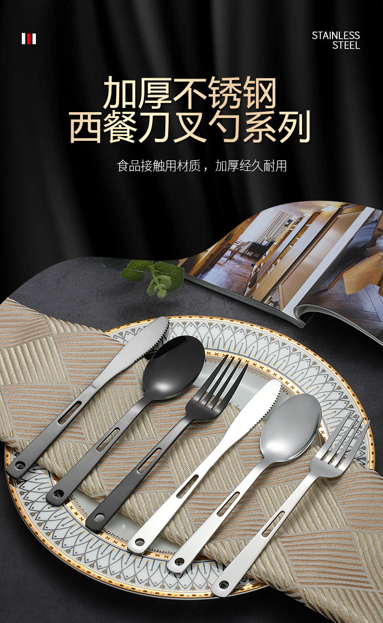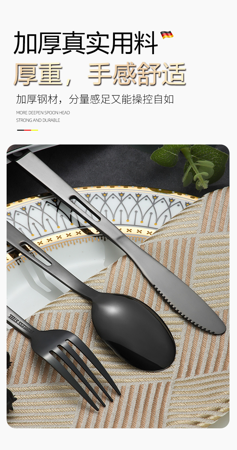 Stainless Steel Cross-Border Outdoor Knife, Fork And Spoon Western Tableware Set Portable Travel Camping Family Three-Piece Creative Hollow-Out